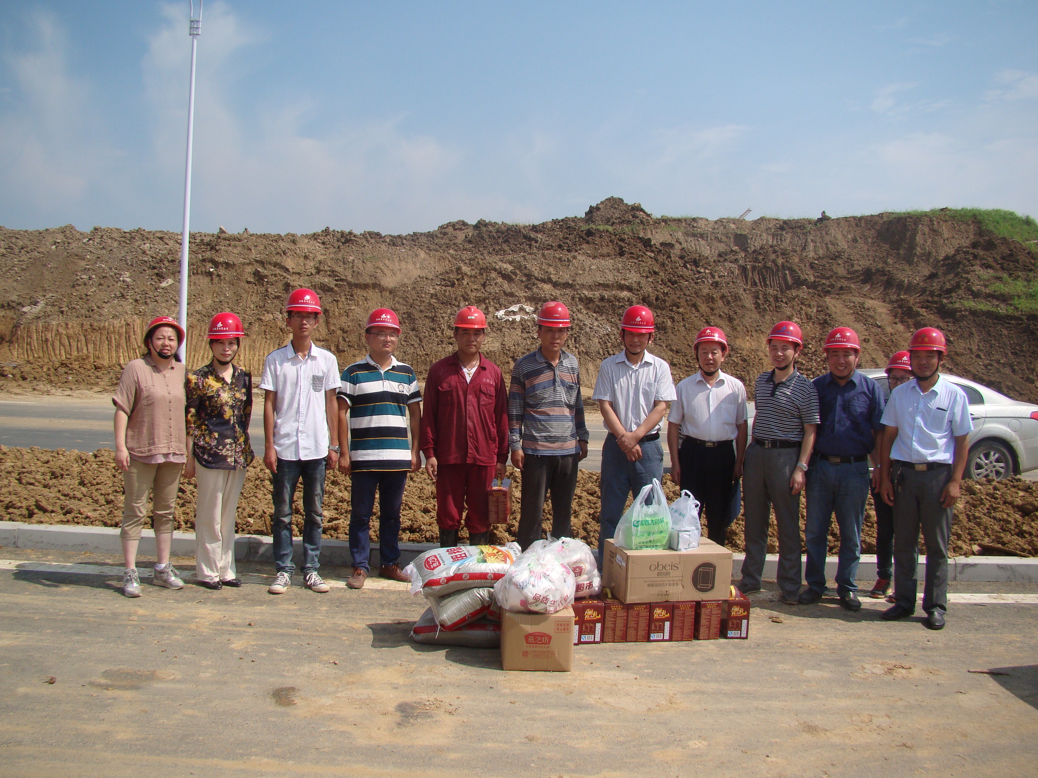 牛書(shū)記一行仔細查看了項目施工進(jìn)展情況,并聽(tīng)取了第一分公司經(jīng)理陳長(cháng)征對該項目施工情況的介紹。高溫下,施工現場(chǎng)的蒸汽管道焊接工作仍然緊張有序的開(kāi)展著(zhù),焊接施工人員蹲在將近3米深的坑道內作業(yè),狹小的空間、炙熱的太陽(yáng)、露天的管道,他們的臉上早已滿(mǎn)是汗水,衣服全部濕透。領(lǐng)導們對大家在烈日下?lián)]汗作業(yè)、不畏艱辛的敬業(yè)精神表示贊揚。隨后將綠豆、白糖、藥品、毛巾、洗發(fā)水、飲料等防暑降溫物品分別發(fā)放到一線(xiàn)員工的手中。當牛書(shū)記聽(tīng)說(shuō)項目現場(chǎng)還有新來(lái)大學(xué)生時(shí),對大學(xué)生進(jìn)行了問(wèn)候,并希望大學(xué)生們可以在項目上得到鍛煉和成長(cháng)。