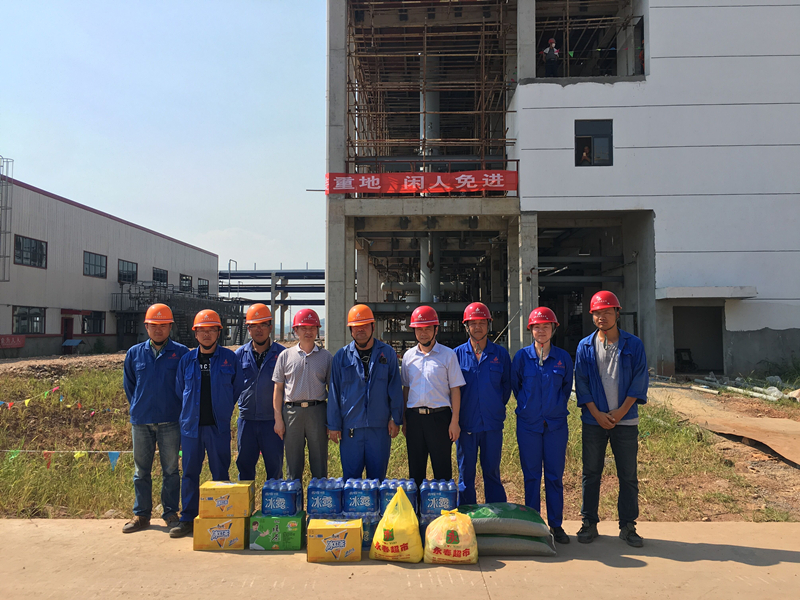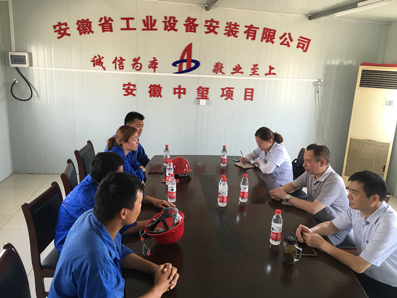 時(shí)值三伏,炎炎烈日,氣溫一直居高不下。公司領(lǐng)導牽掛著(zhù)奮斗在一線(xiàn)的員工。726日下午,公司黨委書(shū)記、副總經(jīng)理胡六中,公司紀委書(shū)記、工會(huì )主席李寬旭一行帶著(zhù)礦泉水、飲料、毛巾等消暑用品,在安慶分公司經(jīng)理史崇松、黨支部書(shū)記劉紅艷、項目經(jīng)理李子鳳的陪同下深入中璽項目施工現場(chǎng),看望正在高溫工作下?lián)]汗如雨的施工員工,給他們帶來(lái)一份公司的關(guān)懷,為他們送上一絲夏季的清涼。
