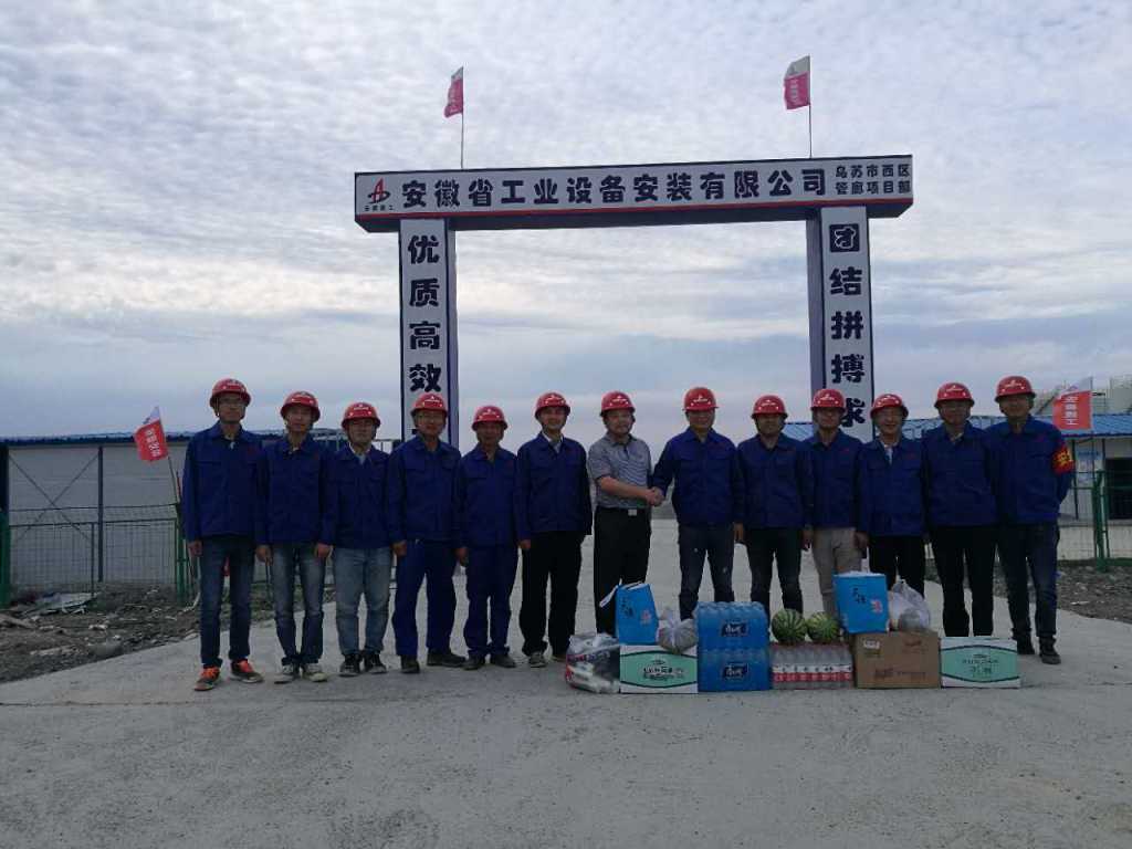 近日,公司董事長(cháng)、總經(jīng)理王軍邦在總經(jīng)理助理、西北分公司經(jīng)理王軍的陪同下前往新疆凱賽烏蘇市西區管廊項目開(kāi)展“夏日送清涼”活動(dòng),為一線(xiàn)員工送上礦泉書(shū)、毛巾、綠豆、白糖、清涼油等防暑降溫用品。