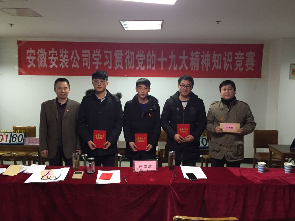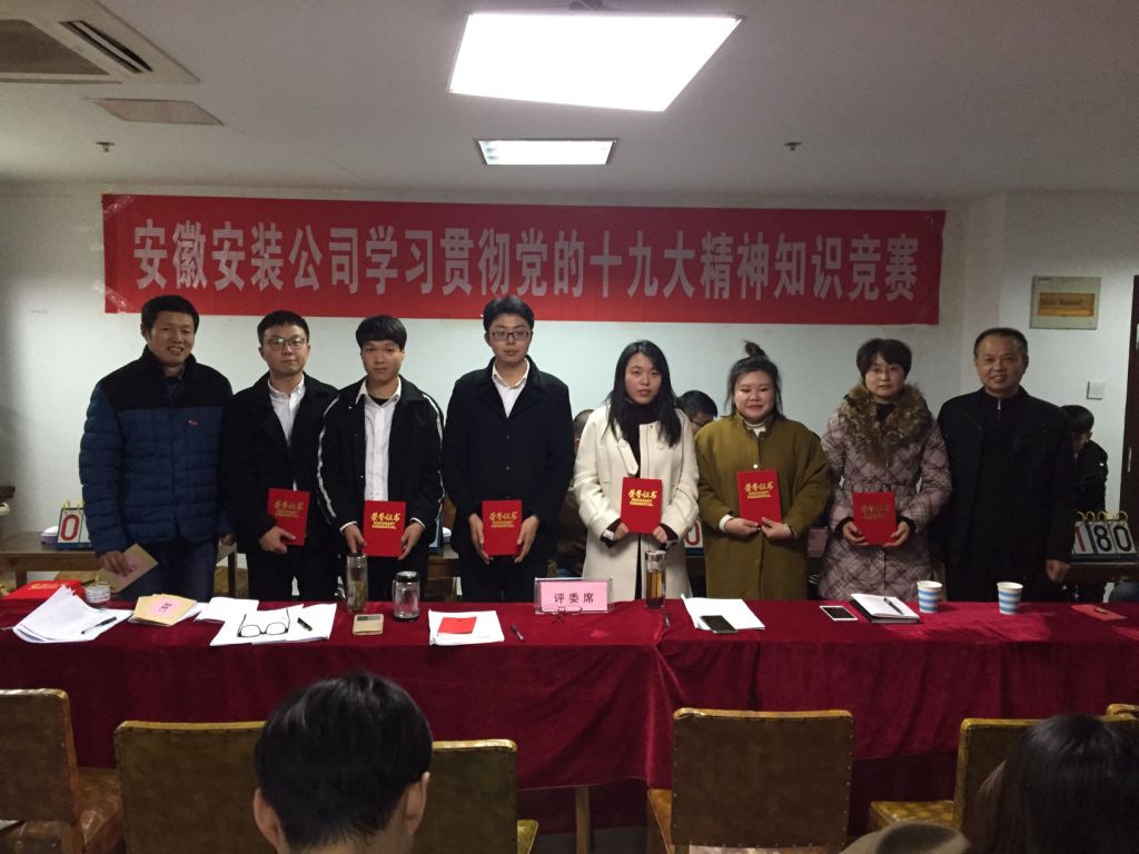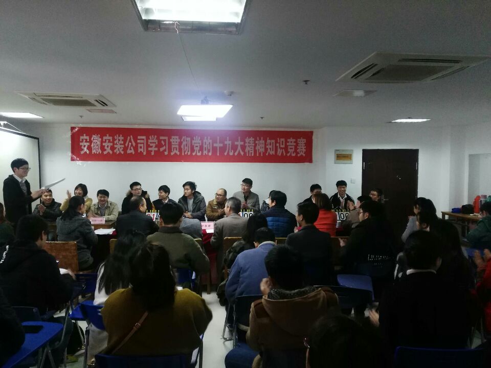 12月6日下午,安徽安裝公司學(xué)習貫徹黨的十九大精神知識競賽成功舉辦。來(lái)自公司機關(guān)及所屬各分公司黨支部8支代表隊24名選手參加比賽。