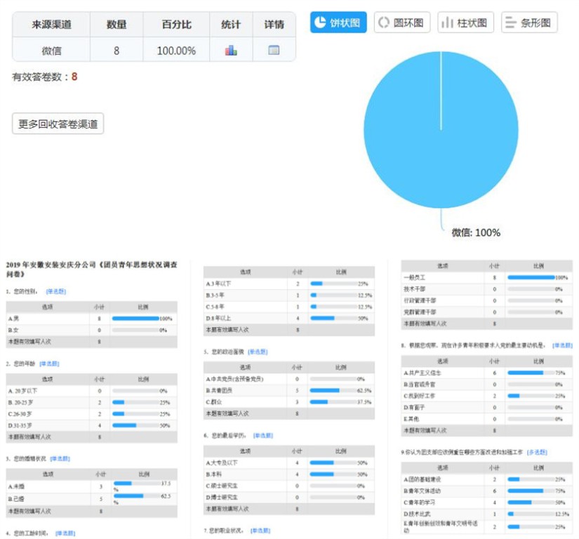 隨后,為進(jìn)一步深入了解青年員工思想、工作、生活狀況,根據新時(shí)期青年思想特點(diǎn),結合分公司實(shí)際情況,團支部利用手機微信掃碼方式在會(huì )議現場(chǎng)對每位青年員工進(jìn)行了思想狀況調查。團支部將根據統計分析報告,針對大家所需所想,廣泛開(kāi)展形式多樣、內容豐富的集體活動(dòng)。
