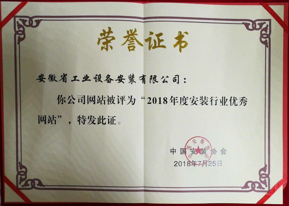 安徽省安裝和機械設備協(xié)會(huì )榮獲2018年度“安裝行業(yè)優(yōu)秀報刊”和“安裝行業(yè)優(yōu)秀網(wǎng)站”稱(chēng)號