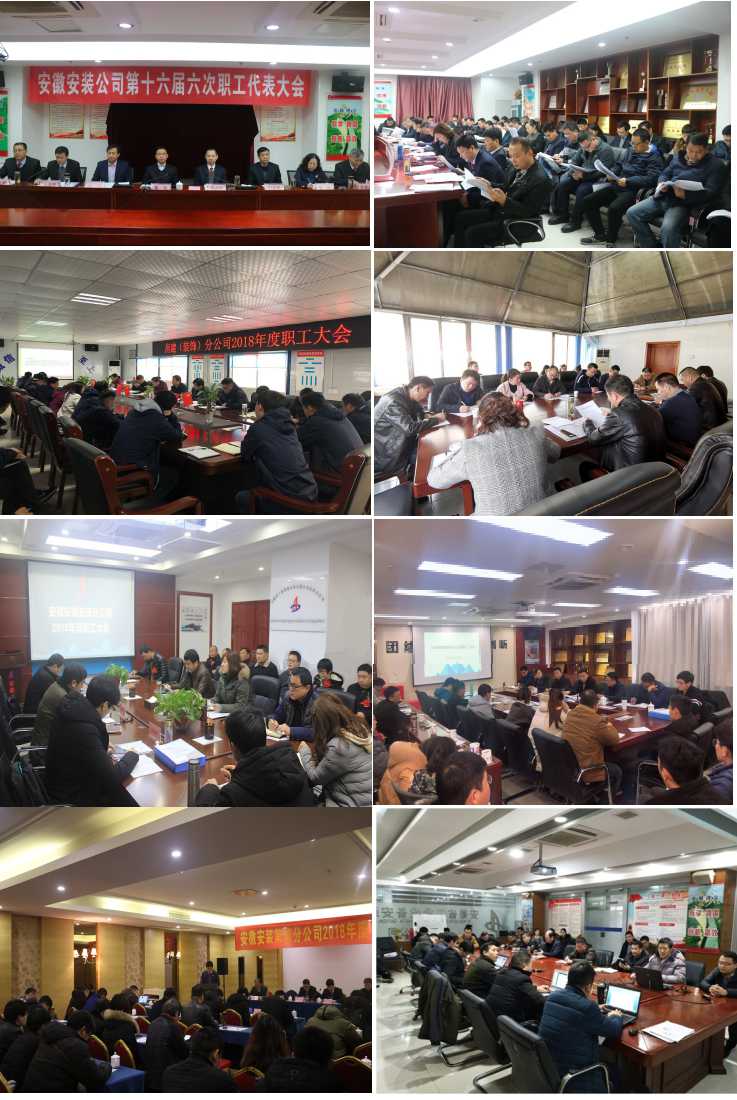 1月29日--3月17日,安徽安裝召開(kāi)十六屆六次職代會(huì )和各分公司職工大會(huì ),宣貫集團公司一屆六次職代會(huì )精神,并結合安徽安裝實(shí)際,重點(diǎn)圍繞“一主兩翼”發(fā)展戰略,多措并舉,力保全年目標任務(wù)的實(shí)現。
