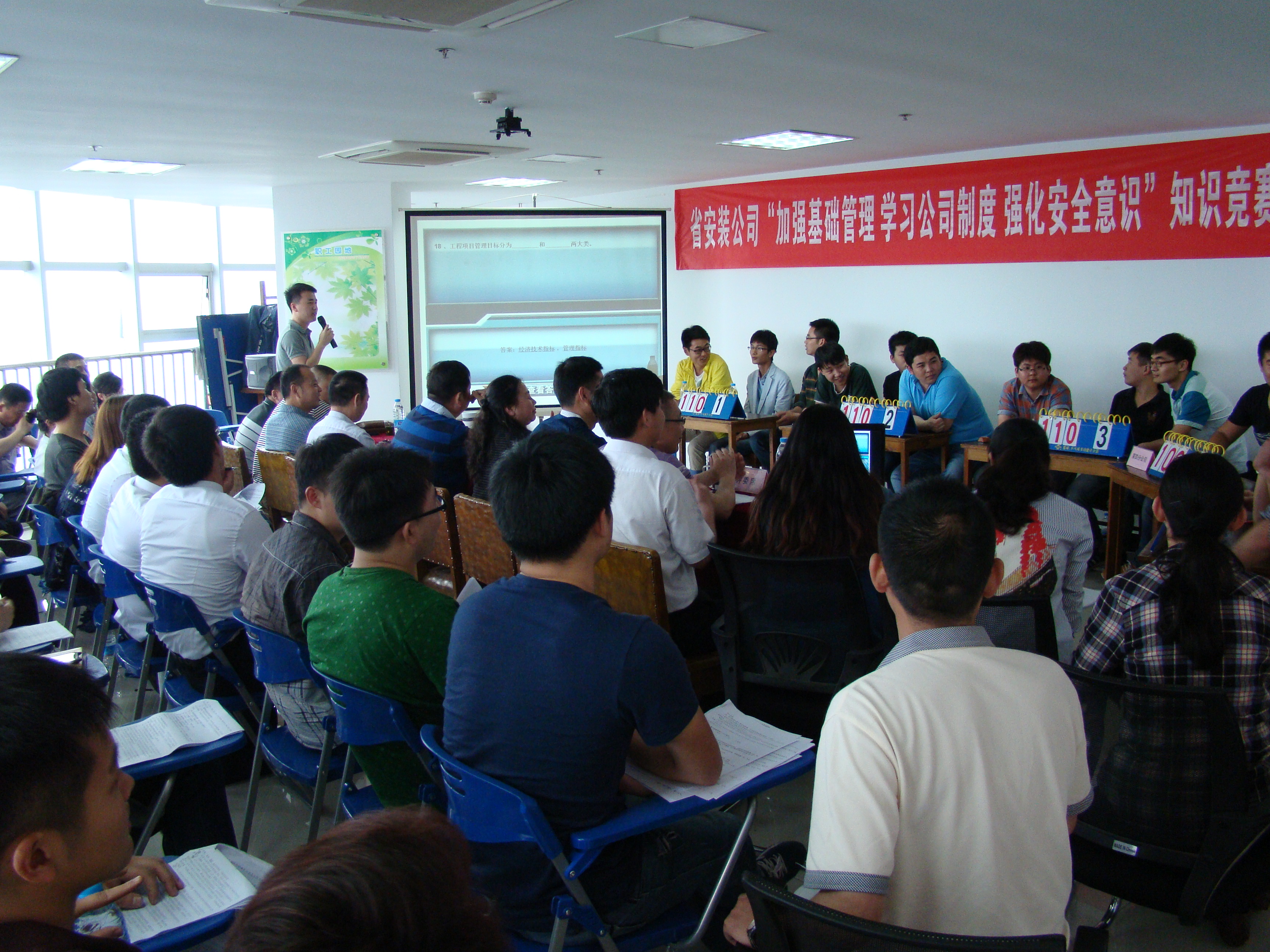 為了充分展現職工積極好學(xué)的精神風(fēng)貌,促進(jìn)職工掌握企業(yè)制度和專(zhuān)業(yè)知識,激勵大家不斷學(xué)習、不斷進(jìn)步。5月15日下午,公司在職工之家舉辦了“加強基礎管理、學(xué)習公司制度、強化安全意識”知識競賽。公司董事長(cháng)、總經(jīng)理王軍邦,黨委副書(shū)記、紀委書(shū)記胡六中,工會(huì )主席李原到現場(chǎng)觀(guān)看比賽,并為選手們鼓勁加油。