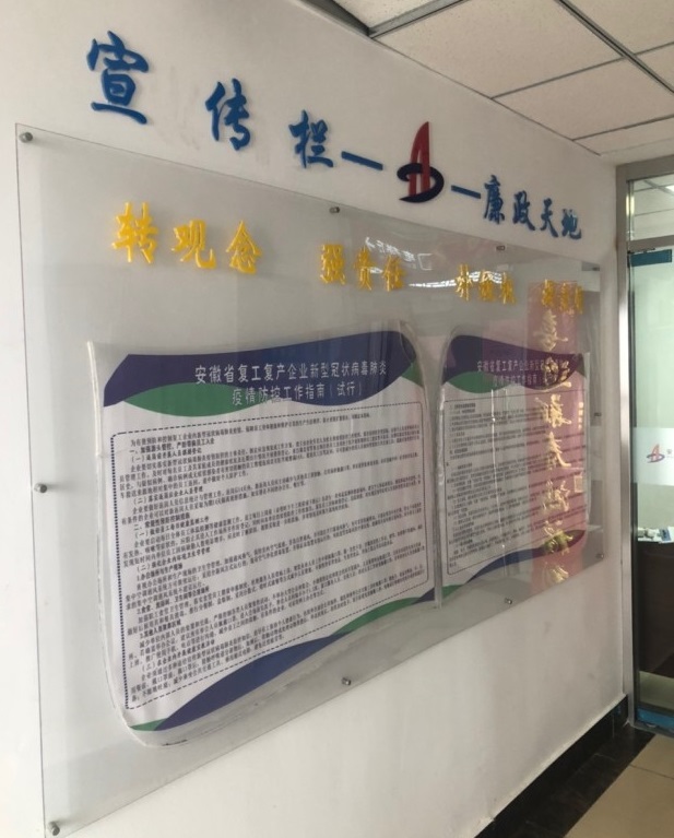 為確保返崗工身體健康和生命安全,安慶分公司在長(cháng)假期間按照公司新冠肺炎疫情防控工作要求,對防護工作進(jìn)行全面部署。分公司安排專(zhuān)人采購防疫口罩、溫控儀、酒精、消毒液、藥棉等防護用品,為全體員工身體健康提供保障;領(lǐng)導班子帶頭值班,每天對辦公區域進(jìn)行全面消殺防護,確保工作環(huán)境安全;分公司黨支部及時(shí)運用微信群、QQ群等網(wǎng)絡(luò )平臺及宣傳欄、展板向分公司全體員工宣傳疫情防護知識及分公司疫情防護措施,使員工無(wú)顧慮到崗,安心工作。