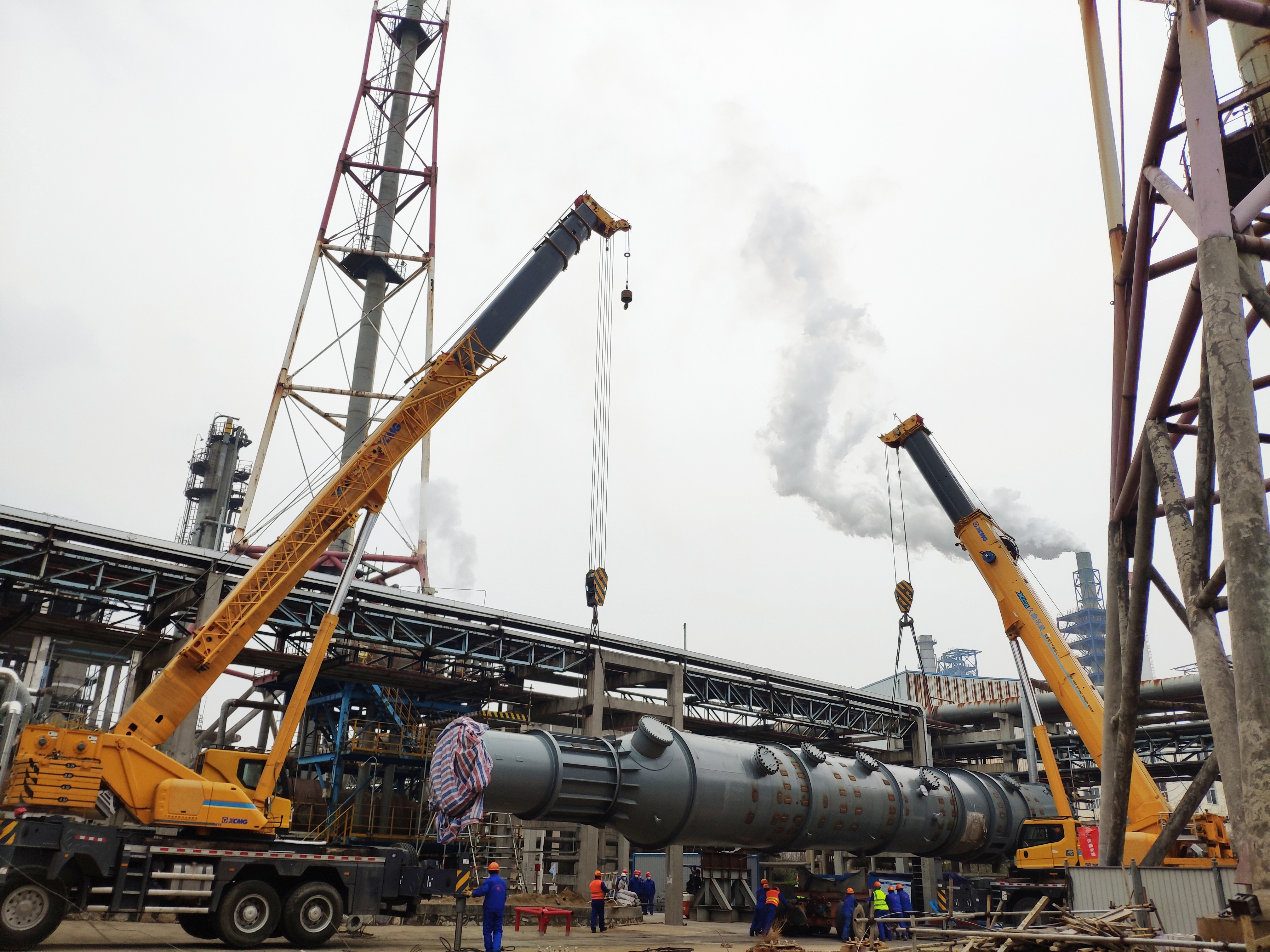 此次脫硫塔下段倒運是“Ⅰ、Ⅱ硫磺回收裝置增設煙氣后堿洗流程工程”的重要節點(diǎn),任務(wù)的順利完成也是安慶石化后堿洗項目2020年的開(kāi)門(mén)紅,為下一階段脫硫塔組對和工藝管道安裝創(chuàng )造了有利條件,也一掃新冠肺炎疫情帶來(lái)的陰霾,鼓舞了項目部的士氣,獲得業(yè)主、監理們的高度贊許和肯定。