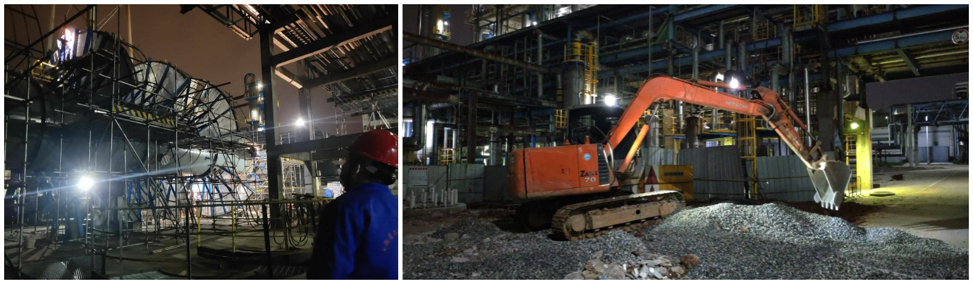縱有豪情在胸,還需躬身以行。夜間,城市的萬(wàn)家燈火漸弱,安徽安裝安慶分公司承建的安慶石化各項目工地上卻燈火通明,挖掘機、切割機、電焊機轟鳴不斷,處處一片忙碌的景象。