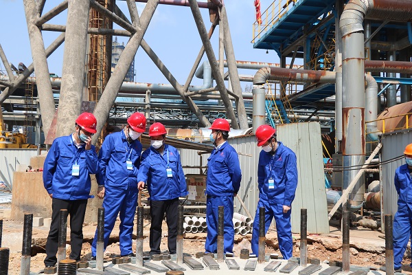 3月18日上午,公司副總經(jīng)理高飛一行赴安慶分公司承攬的“安慶石化Ⅰ、Ⅱ硫磺增設煙氣后堿洗流程項目”調研指導大型設備吊裝工作。
