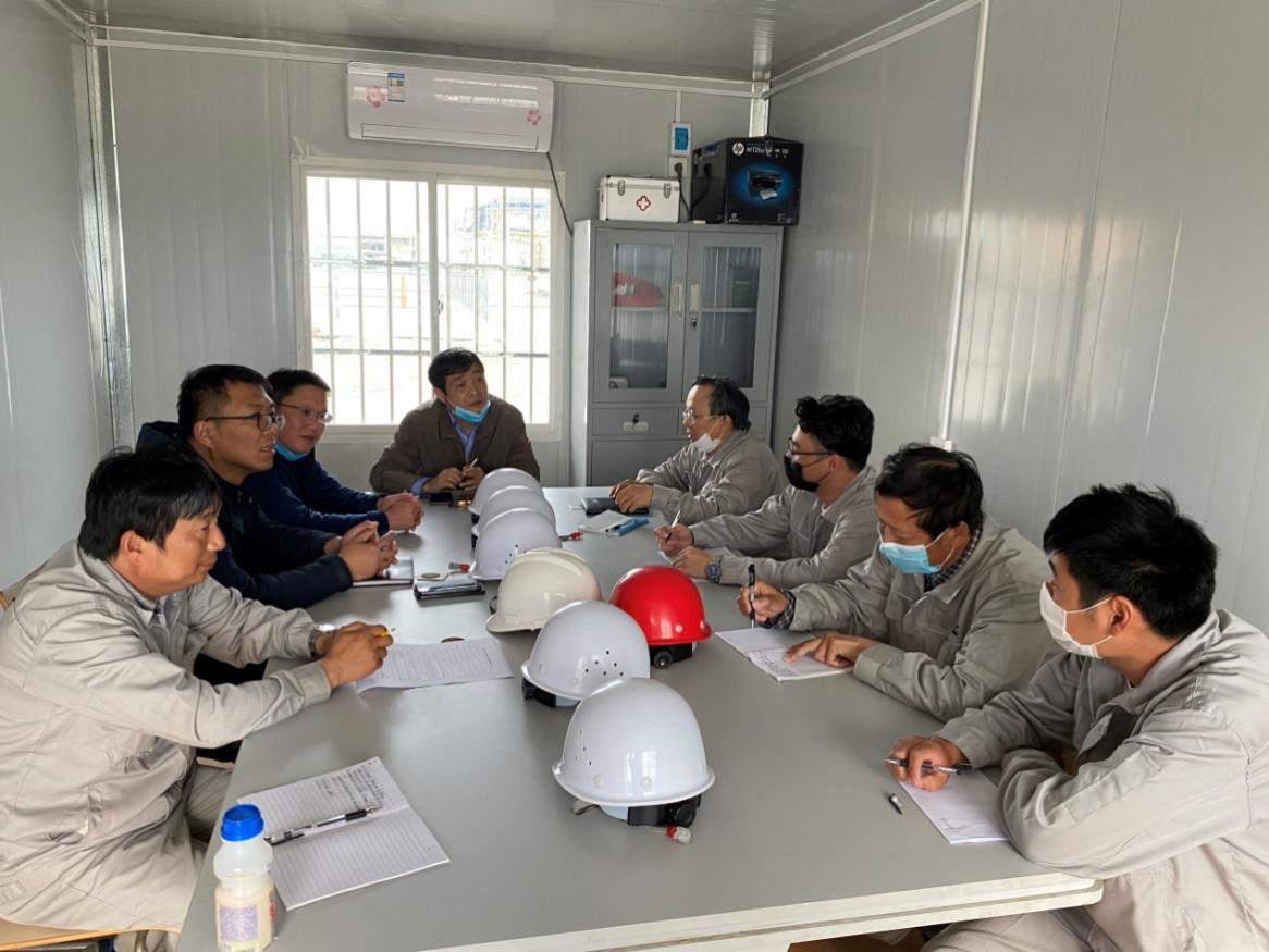 會(huì )上,項目部就復工復產(chǎn)、疫情防控、項目進(jìn)展等方面進(jìn)行了詳細匯報。劉安俊首先代表公司對工作在艱苦的項目一線(xiàn)全體員工表示慰問(wèn),對項目部面對復雜多變的施工環(huán)境迎難而上所做的大量工作給予肯定。在聽(tīng)取項目部就復工復產(chǎn)、疫情防控、項目進(jìn)展等方面的詳細匯報后,對存在的問(wèn)題逐一提出了解決方案。
