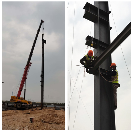 伴隨著(zhù)隆隆的吊車(chē)轟鳴聲,閃爍的電焊火花,縱橫交錯的鋼構架拼裝,一道道工序正在有條不紊的進(jìn)行著(zhù)……這是走進(jìn)蕪湖宇培年產(chǎn)50萬(wàn)方建筑工業(yè)化構件生產(chǎn)基地項目鋼結構工程,看到的一片繁忙施工景象。因受疫情的影響,項目部2020年3月5日接到總包的復工復產(chǎn)通知,3月6日立即組織召開(kāi)復工會(huì )議,全面部署防疫”舉措和生產(chǎn)任務(wù)。在做好施工必備的人、材、機進(jìn)場(chǎng)和安全教育及技術(shù)交底后,3月11日,當第一根27米高的廠(chǎng)房跨立柱穩穩地吊裝成功后,項目部全面啟動(dòng),按下?lián)尮ぁ翱爝M(jìn)鍵”。