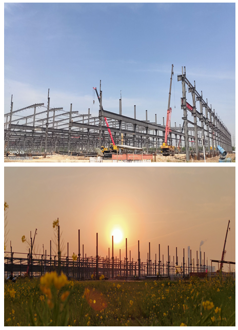為進(jìn)一步調動(dòng)參建人員的積極性和創(chuàng )造性,分公司組織開(kāi)展項目“大干90天”勞動(dòng)競賽,有效形成了一片“比、學(xué)、趕、幫、超的火熱生產(chǎn)局面。盡管3月底持續陰雨天氣,但絲毫沒(méi)有影響到月施工進(jìn)度,2#車(chē)間整體框架已全部按時(shí)間節點(diǎn)圓滿(mǎn)完成。目前,1#車(chē)間安裝正在高速推進(jìn)。