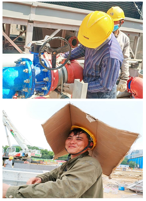 合肥市軌道交通3號線(xiàn)工程——冷卻塔冷凝水管道支架U型卡固定和冷卻塔吊裝現場(chǎng)指揮人員
