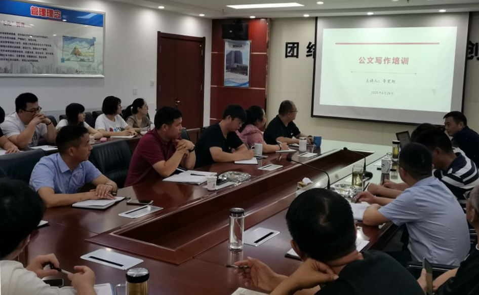 為提升蚌埠分公司員工公文寫(xiě)作水平能力。6月24日上午,蚌埠分公司黨支部在會(huì )議室舉辦了一次公文、應用文寫(xiě)作培訓班,分公司機關(guān)及項目部的員工參加培訓。本次培訓邀請公司紀委書(shū)記、工會(huì )主席李寬旭授課。