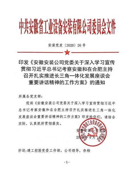 一是公司黨委迅速?lài)烂懿渴饘W(xué)習宣傳貫徹各項工作。98日,公司黨委理論中心組率先帶頭,認真學(xué)習重要講話(huà)精神,深刻交流研討。914日,安徽安裝公司黨委下發(fā)《關(guān)于深入學(xué)習宣傳貫徹習近平總書(shū)記考察安徽和在合肥主持召開(kāi)扎實(shí)推進(jìn)長(cháng)三角一體化發(fā)展座談會(huì )重要講話(huà)精神的工作方案》,結合公司實(shí)際,精心嚴密部署“大學(xué)習”“大宣傳”“大貫徹”和“大落實(shí)”工作,確保公司上下人人都學(xué)習,人人都領(lǐng)會(huì )。
