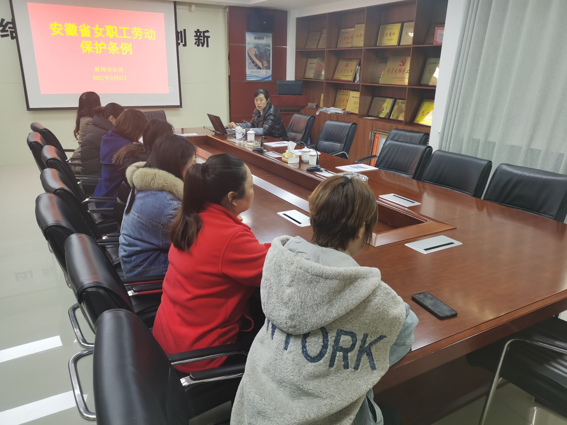 陽(yáng)春三月,百草初醒,萬(wàn)木崢嶸,值此第“111”個(gè)三八國際勞動(dòng)婦女節來(lái)臨之際,3月5日下午,蚌埠分公司工會(huì )開(kāi)展了《女職工勞動(dòng)保護特別規定》知識講座活動(dòng)。講座由分公司黨支部書(shū)記程茂麗組織,分公司全體女職工聆聽(tīng)講座。