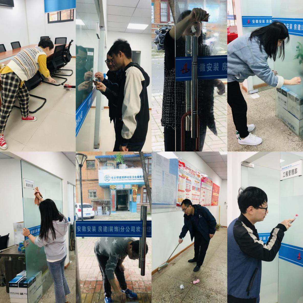 擦洗門(mén)窗,打掃會(huì )議室、整理辦公場(chǎng)所,修繕公共設施等,員工們拿起掃帚、簸箕等各種工具,大家分工明確,迅速行動(dòng),團結協(xié)作,一片熱火朝天的忙碌景象,掀起了衛生整治活動(dòng)的高潮。經(jīng)過(guò)大家的努力,辦公區干凈整潔,煥然一新。
