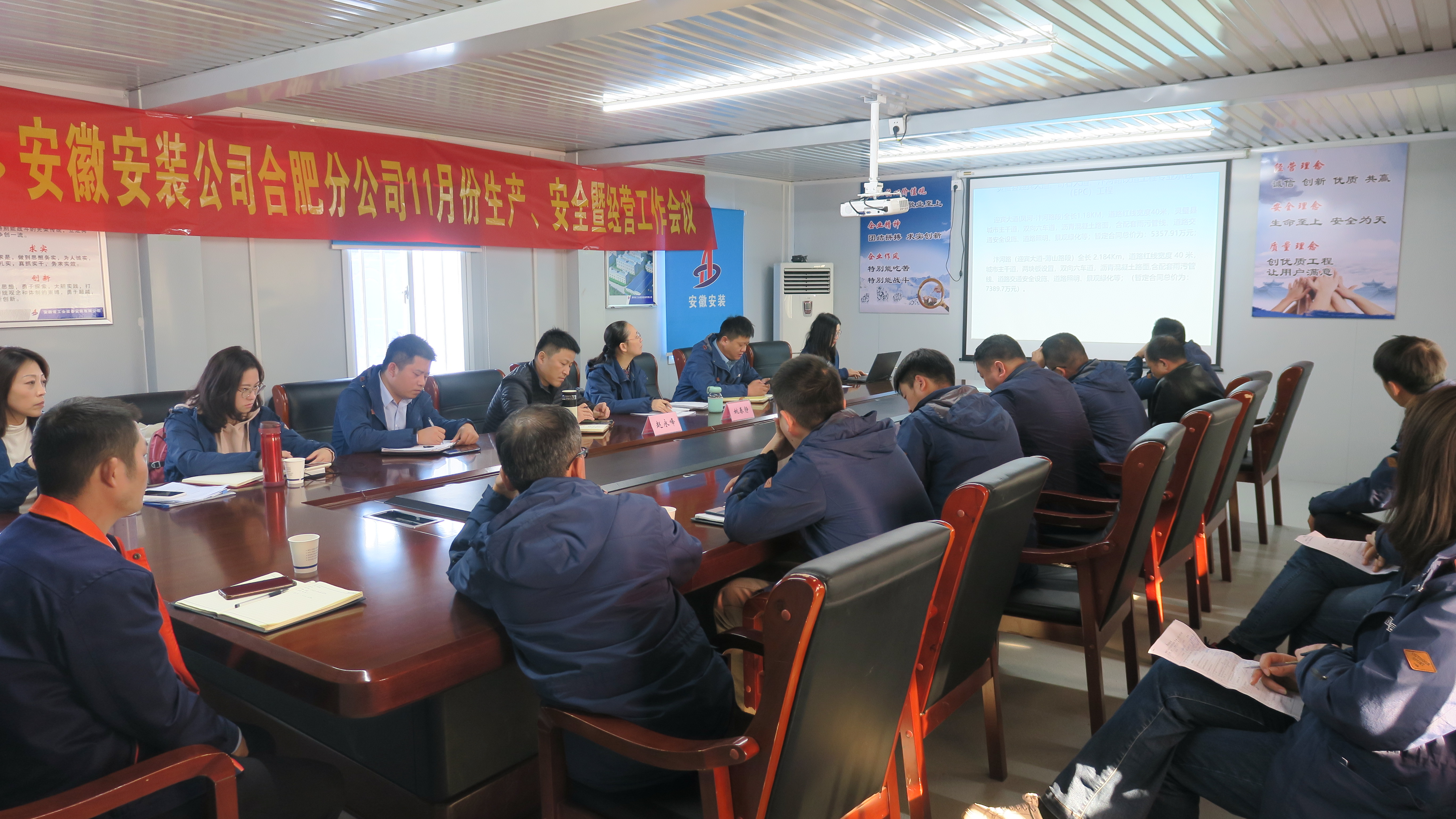 11月10日下午,合肥分公司在新宇藥業(yè)微生物藥物生產(chǎn)建設項目部召開(kāi)了分公司11 月份生產(chǎn)、安全暨經(jīng)營(yíng)工作會(huì )議。分公司領(lǐng)導班子成員、所屬各項目經(jīng)理、機關(guān)各部門(mén)負責人參會(huì ),會(huì )議由分公司副經(jīng)理夏國祥主持。