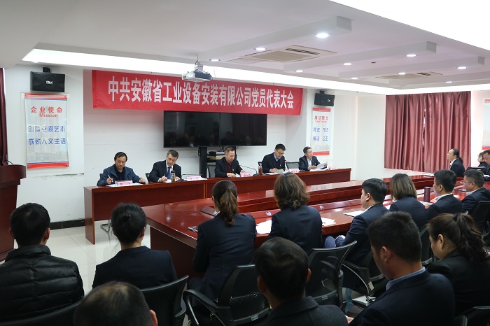12月9日下午,安徽安裝公司召開(kāi)黨員代表大會(huì )選舉公司出席建工控股第一次黨代會(huì )代表。公司黨委書(shū)記、董事長(cháng)胡六中出席會(huì )議并講話(huà)。黨委副書(shū)記、副總經(jīng)理周正平主持會(huì )議。來(lái)自所屬各黨支部的50名代表人員參加會(huì )議。