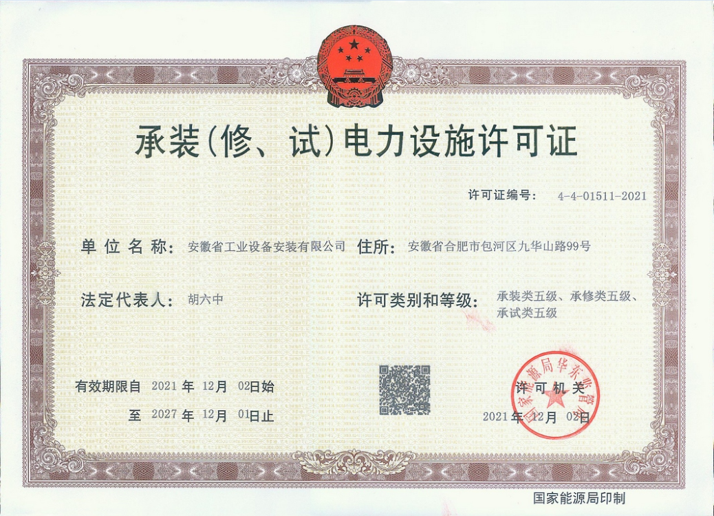 近日,安徽安裝公司申報的承裝(修、試)電力設施許可證資質(zhì)成功獲批。