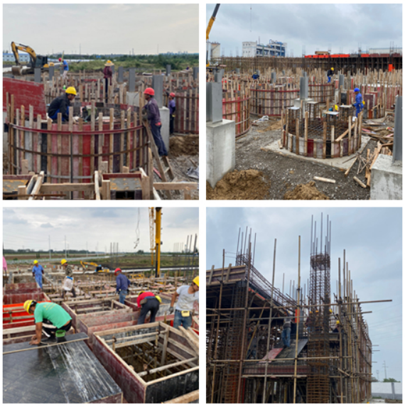 新宇藥業(yè)微生物藥物生產(chǎn)建設項目一期工程 罐體基礎設施;發(fā)酵車(chē)間一層頂腳手架搭設、模板安裝;動(dòng)力車(chē)間鋼筋綁扎