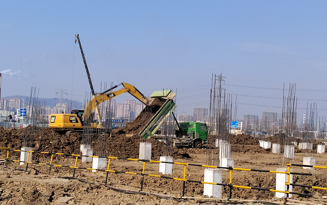 現場(chǎng)隨處可見(jiàn)的挖掘機、裝載車(chē)、吊車(chē)的轟鳴聲與工人師傅們緊張忙碌的工作場(chǎng)景交織在一起,勾勒出一派繁忙、壯觀(guān)、熱火朝天的節日大干火熱場(chǎng)景。