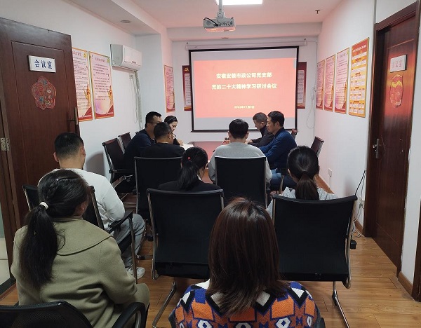 安慶分公司黨支部精心組織及時(shí)學(xué)。組織全體員工收聽(tīng)收看黨的二十大開(kāi)幕會(huì )、中共中央介紹解讀黨的二十大報告新聞發(fā)布會(huì ),通過(guò)電視、網(wǎng)絡(luò )、廣播等多種渠道及時(shí)了解和關(guān)注大會(huì )盛況,第一時(shí)間學(xué)習領(lǐng)會(huì )黨的二十大精神。組織購買(mǎi)《黨的二十大輔導讀本》、新修改的《中國共產(chǎn)黨章程》學(xué)習用書(shū),向黨員干部發(fā)放,通過(guò)黨員大會(huì )、黨員活動(dòng)日、黨員帶頭領(lǐng)學(xué)等形式,為全面深入學(xué)習黨的二十大精神,安慶分公司全體黨員領(lǐng)導干部堅持精研細讀黨的二十大報告、黨章等大會(huì )文件,全面系統地領(lǐng)會(huì )和把握黨的二十大精神,在真學(xué)真懂、真悟真用上作好表率、走在前列,帶動(dòng)全分公司上下迅速掀起學(xué)習宣傳貫徹黨的二十大精神熱潮。