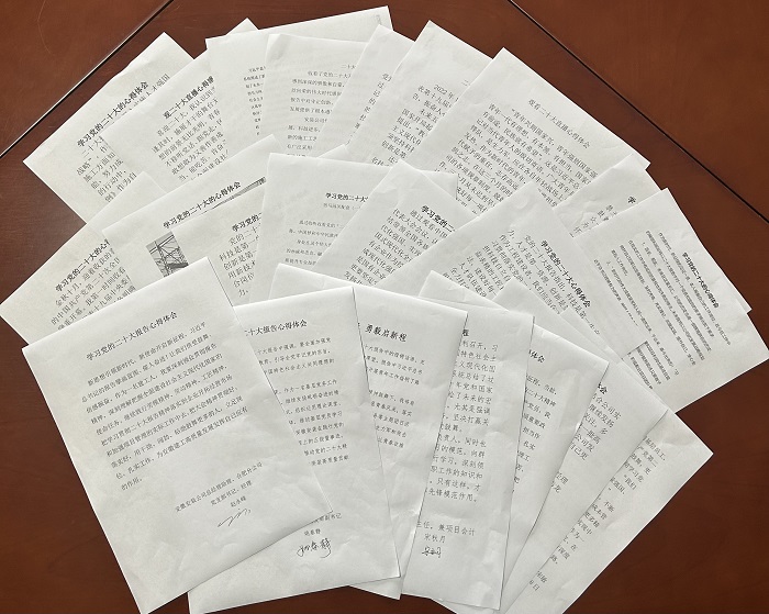 交流討論互動(dòng)學(xué)。以“深學(xué)細悟二十大,勇創(chuàng )佳績(jì)爭先鋒”大討論活動(dòng)為契機,分公司班子帶頭開(kāi)展學(xué)習研討交流,暢談心得體會(huì ),分享學(xué)習收獲,凝聚思想共識。分公司全體黨員表示,一定堅決把思想和行動(dòng)統一到黨的二十大精神上來(lái),牢記初心使命,把學(xué)習熱情化作推進(jìn)新時(shí)代企業(yè)高質(zhì)量發(fā)展的自覺(jué)行動(dòng),以沖鋒的姿態(tài)干好本職工作,在本職崗位上建功立業(yè),在勇毅前行中實(shí)現自身價(jià)值。