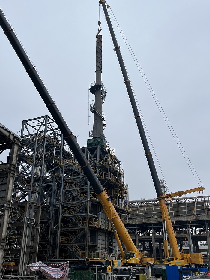 【大干四季度、沖刺全年紅】 安慶分公司苯乙烯F—301加熱爐煙氣余熱回收項目加熱爐煙囪順利吊裝