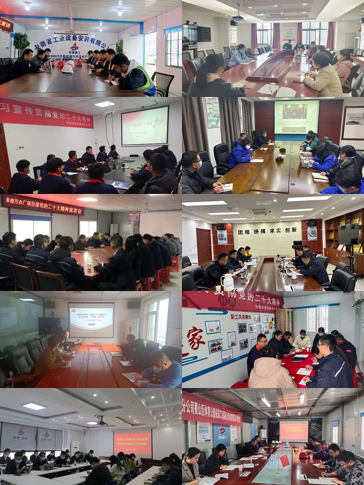 學(xué)習宣傳貫徹黨的二十大精神是當前和今后一個(gè)時(shí)期的首要政治任務(wù)。近期,安徽安裝黨員代表宣講團成員結合實(shí)際,分赴機關(guān)、各分公司項目部開(kāi)展系列宣講活動(dòng),積極推動(dòng)大會(huì )精神深入基層、深入職工、深入人心。