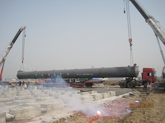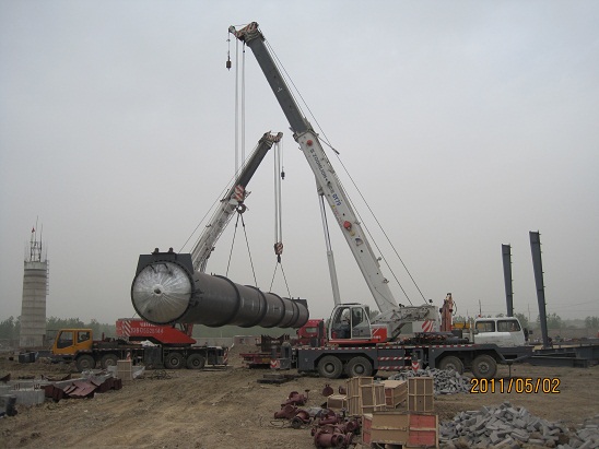 5月1日上午9時(shí)許,隨著(zhù)一陣鞭炮聲響徹鳳陽(yáng)僑裕新型建材有限公司施工工地,蚌埠分公司承建的鳳陽(yáng)僑裕8臺蒸壓斧吊裝工作由此拉開(kāi)了序幕。待安裝蒸壓斧單臺直徑2米、長(cháng)32米、重約35噸。9點(diǎn)15分,隨著(zhù)一聲號令,兩臺50T和70T吊車(chē)緩緩收鉤,在現場(chǎng) “起臂、轉臂、扒臂、起鉤、落鉤”等手勢的正確指揮下,第一臺蒸壓斧就象一條巨龍騰空而起,9點(diǎn)25分穩穩地落在預定的位置上,至5月2日11時(shí)最后兩臺設備就位,順利完成了全部吊裝任務(wù)。本次吊裝作業(yè)由于項目部安排得當、組織有力、協(xié)調到位,整個(gè)吊裝作業(yè)安全規范,現場(chǎng)施工井然有序,安徽省安的專(zhuān)業(yè)施工能力再次得到檢驗!
