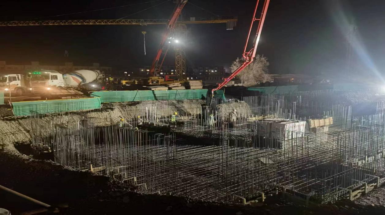 為了項目能如期完工,項目部緊抓工程進(jìn)度,采取“白加黑”施工方式,夜幕下的烏蘇南苑項目部施工現場(chǎng)依舊是燈火通明,機器轟鳴,一片忙碌景象。