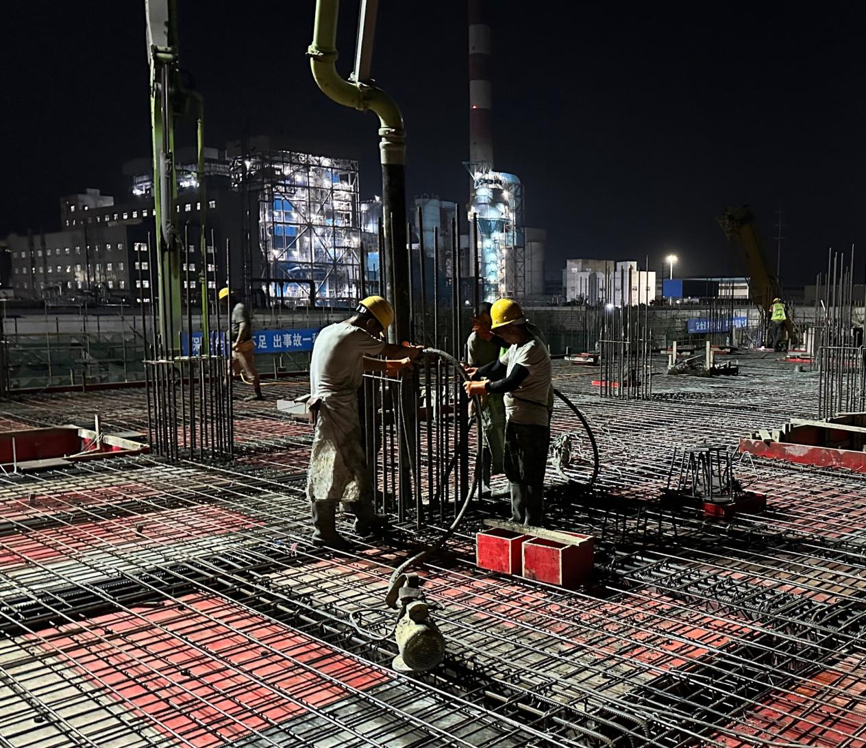 地上一層澆筑前,項目部做了精心施工準備,領(lǐng)導班子每晚組織召開(kāi)工程進(jìn)度協(xié)調會(huì ),對分包單位提出的問(wèn)題,當即答疑,分解次日勞動(dòng)競賽工作任務(wù)。同時(shí),項目部編制夜班值班制度,指導、督促、檢查夜班中出現的問(wèn)題,確保工程進(jìn)度有序推進(jìn)。任務(wù)分解下去,各施工班組馬上投入到準備工作中,卯足了勁,一定要完成任務(wù)。搶工恰逢夏日高溫、梅雨季節反復期間,客觀(guān)條件受限,為施工生產(chǎn)帶來(lái)困難,項目部利用夜間搶抓施工任務(wù),在雨水到來(lái)前盡可能多的進(jìn)行施工,推進(jìn)生產(chǎn)進(jìn)度。
