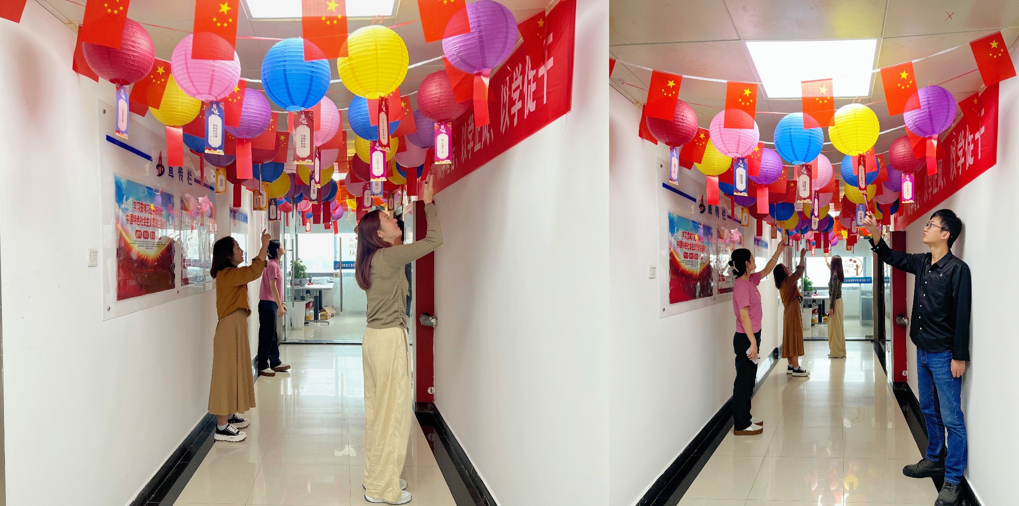 活動(dòng)期間,分公司購置了各類(lèi)節日裝飾品,對分公司工作環(huán)境進(jìn)行了精心裝扮,鮮紅的國旗和多彩的燈籠營(yíng)造了濃厚的節日氛圍?;顒?dòng)過(guò)程中,分公司員工盡情分享工作中的感想與收獲,品嘗擺放的石榴等水果以及各式月餅,積極踴躍參加猜燈謎、投壺游戲等活動(dòng)。在制作燈籠環(huán)節,員工們全神貫注,仔細認真地搭接燈籠的每一個(gè)構件,看著(zhù)承載著(zhù)團圓的傳統藝術(shù)品在手中慢慢成形,大家歡聲笑語(yǔ)、頗有成就。