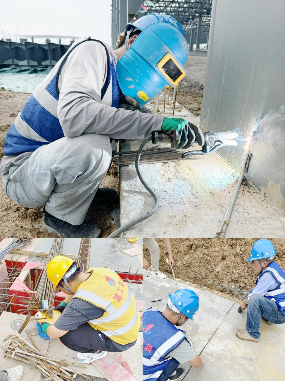 無(wú)懼“烤”驗,蜀山經(jīng)濟產(chǎn)業(yè)園水電安裝項目的工人們全神貫注地進(jìn)行著(zhù)電氣配管預埋固定,接地跨接焊接,滾燙的鋼筋、汗濕的衣服詮釋著(zhù)烈日下的10分“熟”。