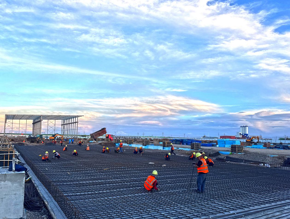 截至目前,廠(chǎng)房鋼結構完成1500噸建設量,獨立基礎、條形基礎全部完成,設備基礎正在施工;變電所二層主體施工完成,三層主體正在施工。