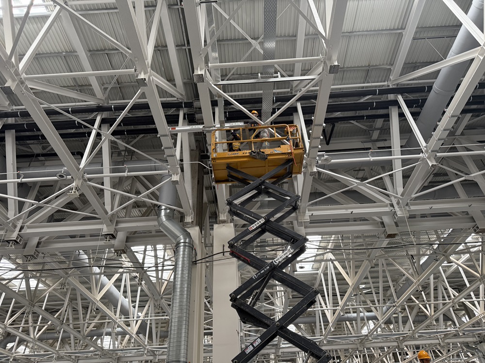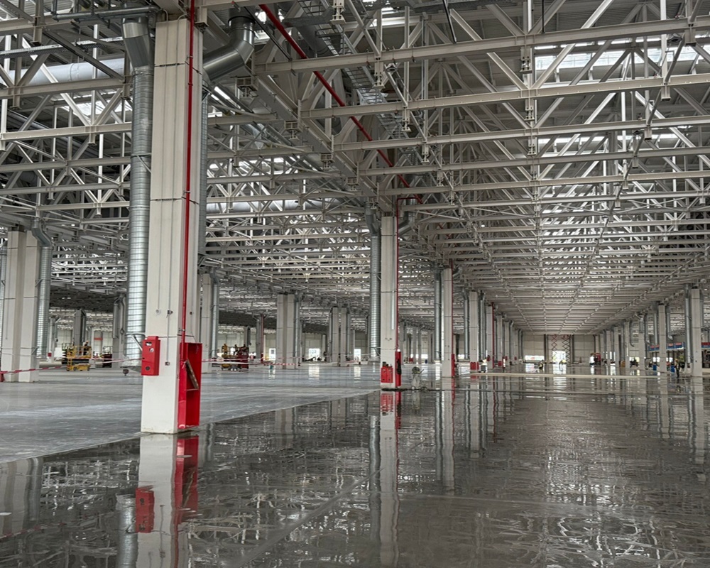 截至目前,焊裝車(chē)間燈具、車(chē)間一東側630毫米循環(huán)水不銹鋼管已全部安裝完成。本周完成消防箱安裝150套,母線(xiàn)安裝700米,屋頂風(fēng)機設備吊裝到位,如期完成節點(diǎn)目標。與此同時(shí),工藝廠(chǎng)家已進(jìn)場(chǎng)同步施工。