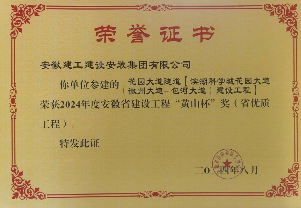 近日,安徽省住房和城鄉建設廳公布了2024年度安徽省建設工程“黃山杯”獲獎項目名單,建工安裝合肥分公司濱湖科學(xué)城花園大道(徽州大道-包河大道)建設工程項目榮獲“黃山杯”獎項,這是本項目繼榮獲華東優(yōu)質(zhì)安裝工程獎之后的又一重量級獎項。